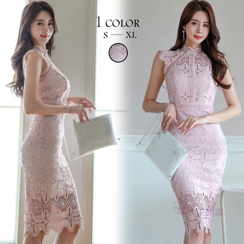 レースワンピース タイトワンピース レディース ピンク S-XL ひざ丈 花柄 上品 エレガント 25zmx100