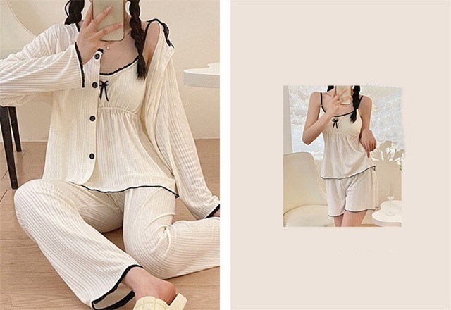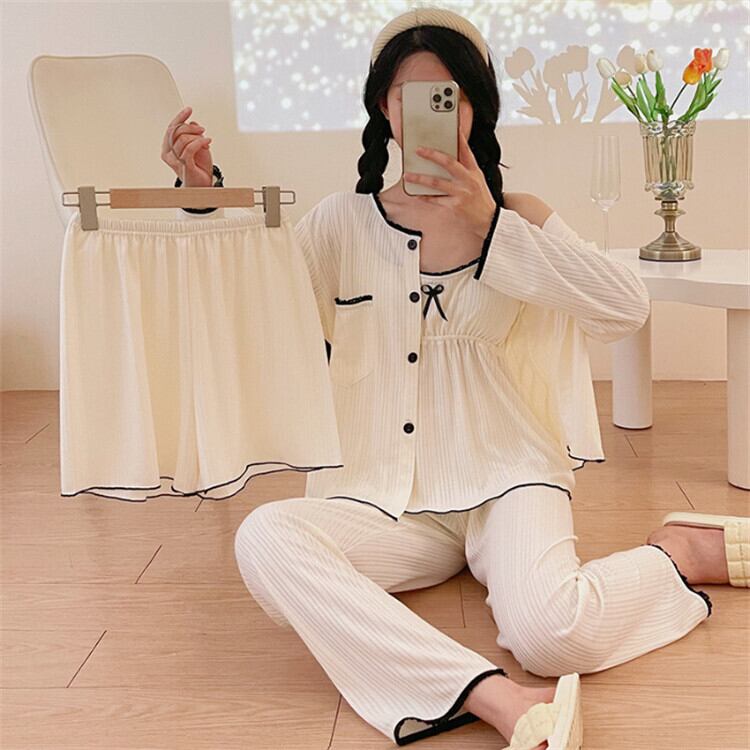 ■商品 パジャマ レディース 2type M-2XL 4点セット 胸パッド付 上下セット 柔らかい ナイトウェア 春夏秋 部屋着 韓国 ファッション コーデ おすすめ カジュアル きれいめ 大きいサイズ 人気 ゆったり 20代 30代 40代 50代