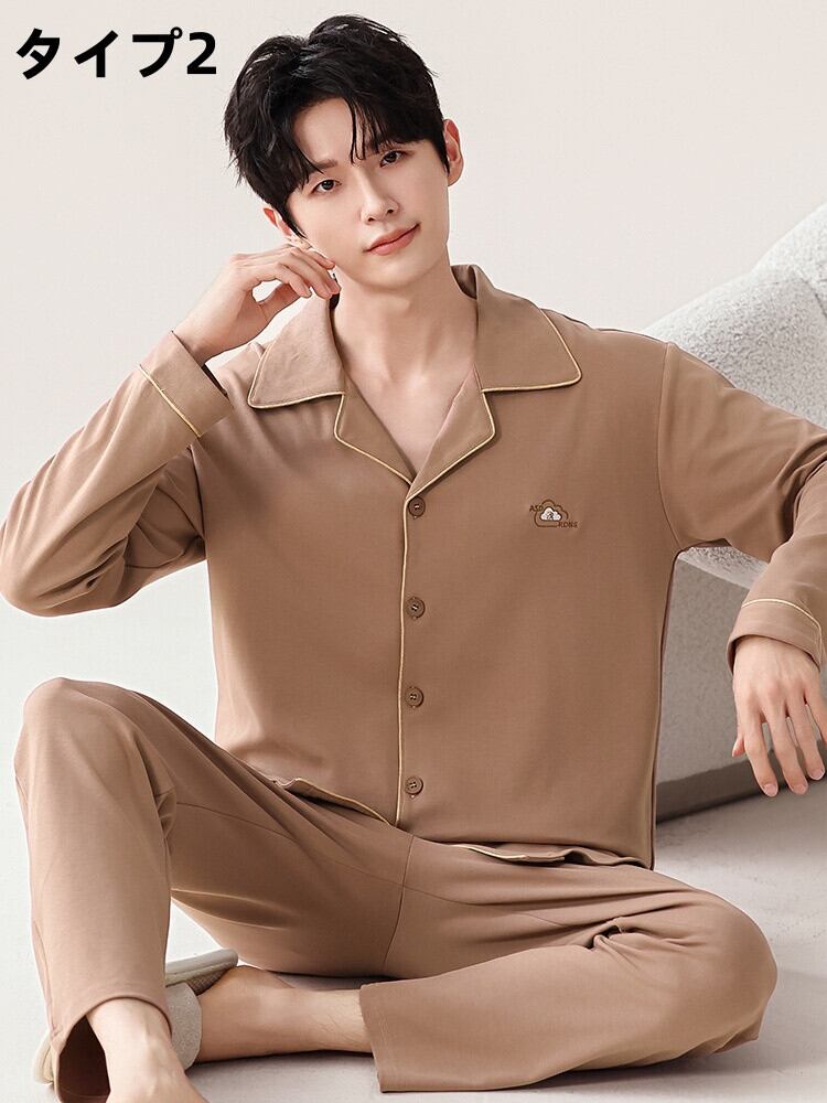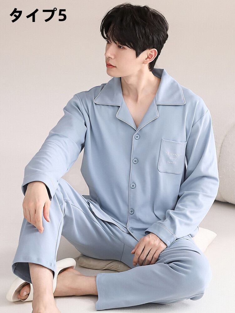 ■商品 パジャマ メンズ 12type L-4XL 綿 無地 長袖 上下セット 前開き 部屋着 ルームウェア 春秋 韓国 ファッション コーデ おすすめ カジュアル きれいめ 大きいサイズ 人気 ゆったり 20代 30代 40代 50代