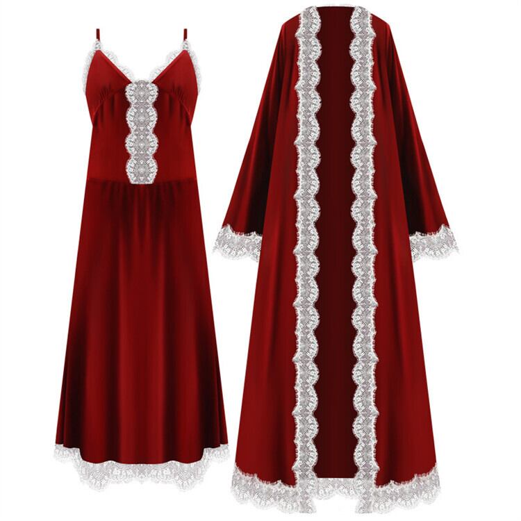 ネグリジェ ナイトガウン 2点セット レディース 2色 M-XL キャミソールワンピース ベルベット 部屋着 ルームウェア 25zm92