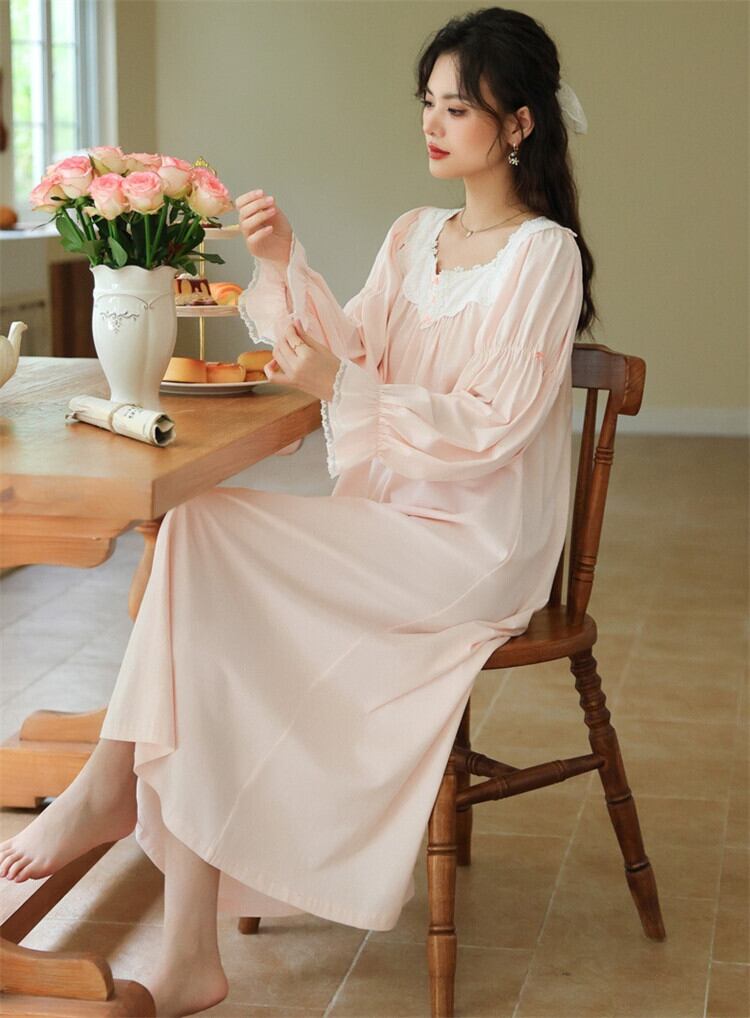 ■商品 ネグリジェ ワンピース 長袖 レディース 3色 M-XL 綿 部屋着 ナイトウェア ロング丈 可愛い 韓国 ファッション コーデ おすすめ カジュアル きれいめ 大きいサイズ 人気 ゆったり 20代 30代 40代 50代