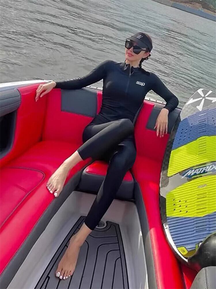 この水着セットは、タンキニとラッシュガードの組み合わせにより、UVカット効果があり、日差しから肌を守ります。動きやすさを考慮したデザインで、マリンスポーツや水遊びも思いきり楽しめます。黒いシンプルな色合いは、どんなシーンにも合わせやすく、幅広いスタイルにマッチします。
