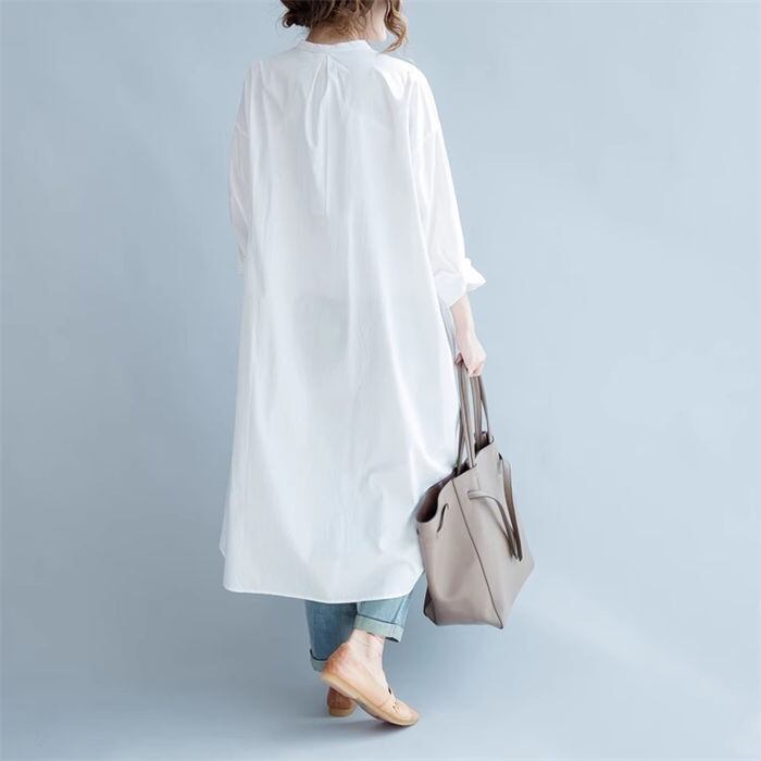 ■商品 シャツワンピース ロングシャツ レディース 白 フリーサイズ ブラウス カジュアル 無地 体型カバー 韓国 ファッション コーデ おすすめ カジュアル きれいめ 大きいサイズ 人気 ゆったり 20代 30代 40代 50代