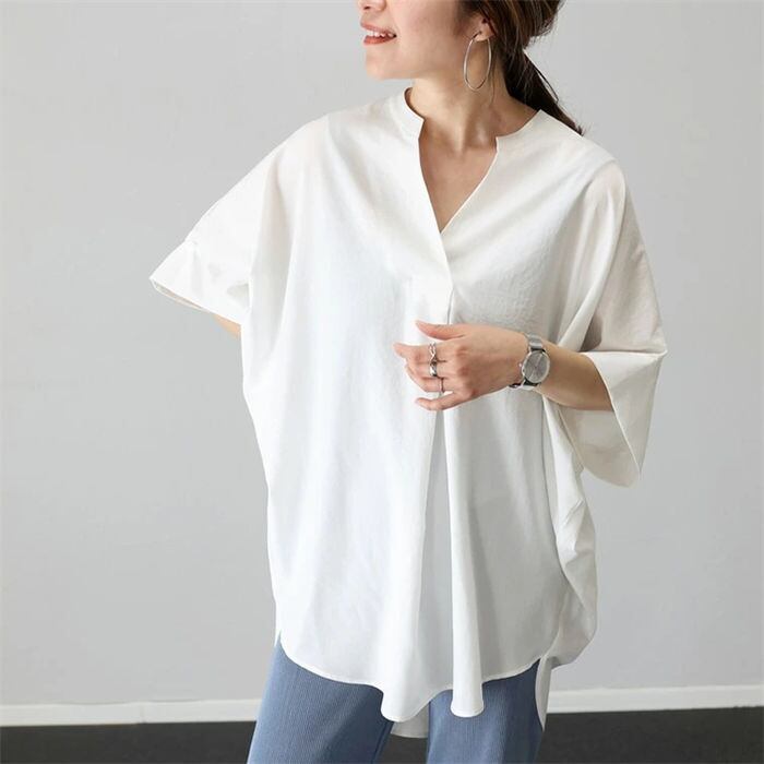 このブラウスは、ゆったりとしたシルエットが特徴的で、動きやすさと快適な着心地を実現しています。無地のデザインは、他のアイテムとのコーディネートも簡単で、デイリーユースからお出かけシーンまで幅広く活躍します!春夏の暖かい日差しの下でも、軽やかに過ごせるおすすめのアイテムです。