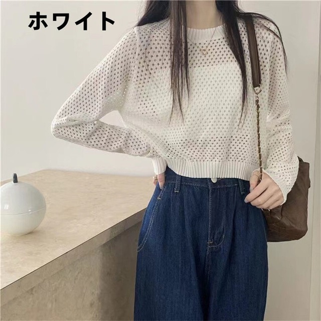 このニットトップスはフリーサイズのため、リラックスした着心地を実現します。長袖仕様で春や夏の涼しい日にもぴったりです。シースルーのデザインは、軽やかでありながらもさりげない女性らしさを演出し、デイリーユースはもちろん、ちょっとしたお出かけシーンにも対応します。無地のデザインは、どんなボトムスとも相性抜群で、シンプルながらもおしゃれな印象を与えます!