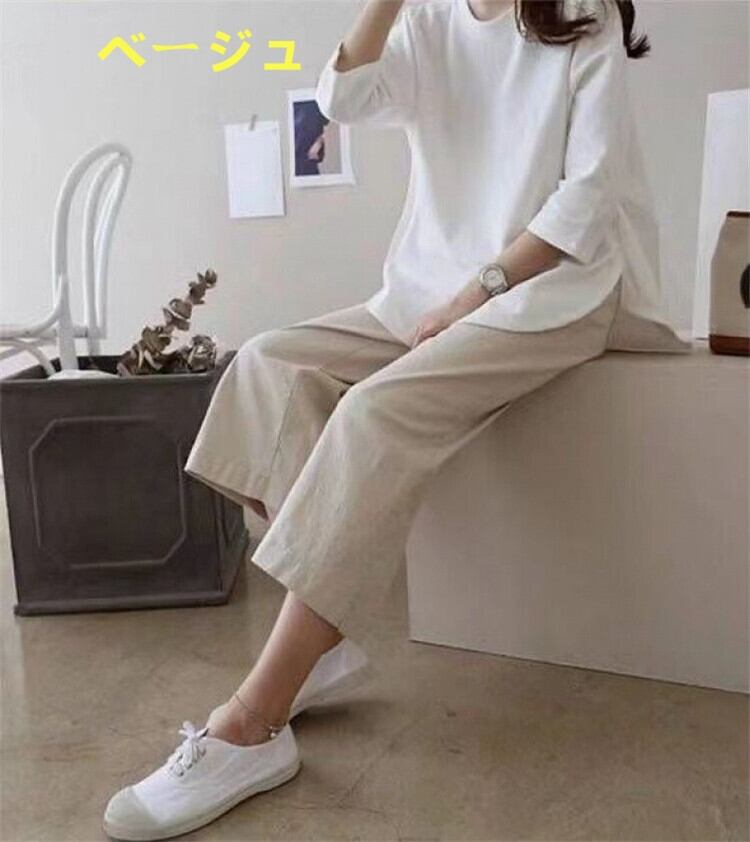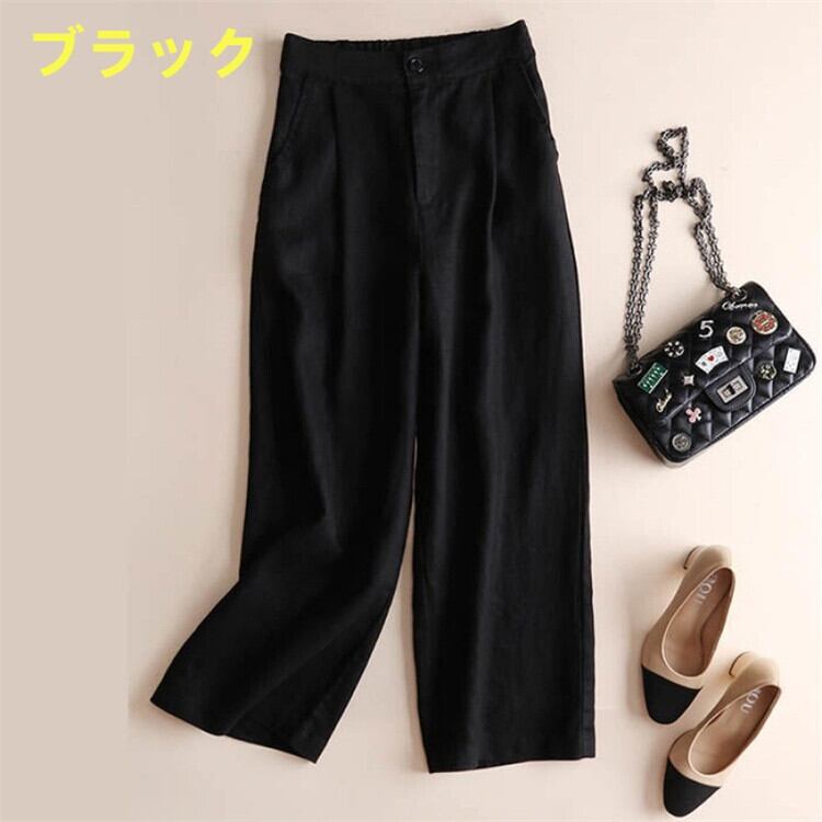 リネンパンツ 綿麻 レディース 7色 S-3XL 無地 9分丈 イージーパンツ ウエストゴム ゆったり カジュアル 25zm260