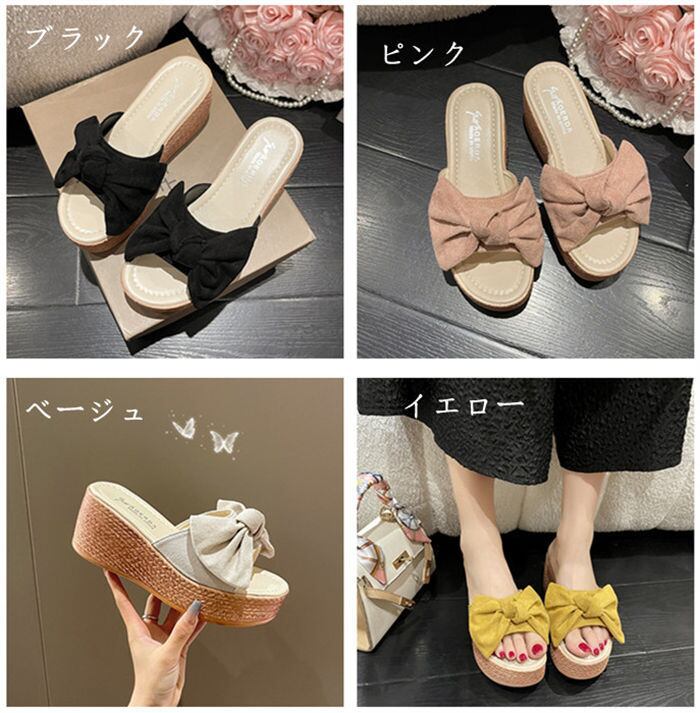 サンダル 厚底スリッパ レディース 4色 22-26.5㎝ 厚底 ウェッジソール カジュアル かわいい おしゃれ 25zm362