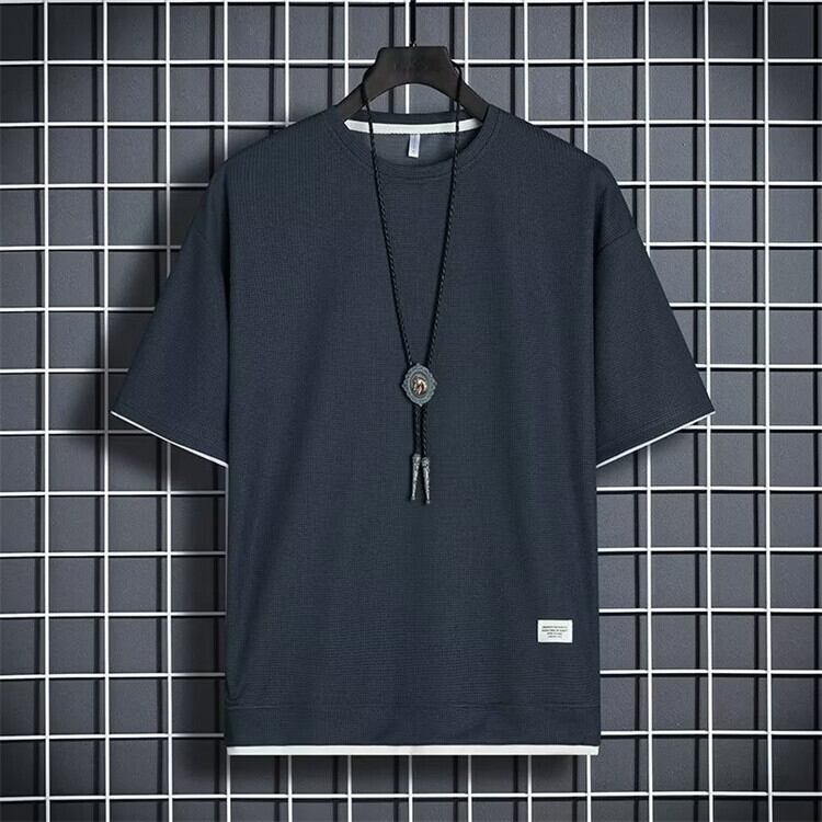 tシャツ 半袖 半袖tシャツ メンズ 7色 M-4XL ワッフルtシャツ 無地 カジュアル 重ね着風 カットソー 25zm518