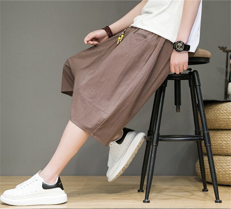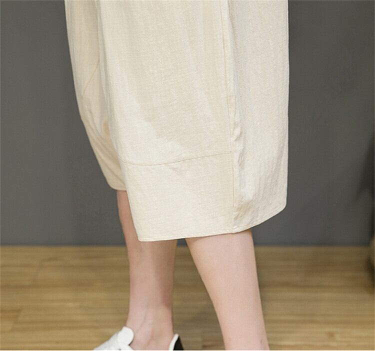 ★特徴:軽やかな薄手の綿麻素材を使用した五分丈パンツは、日常のカジュアルスタイルからリラックスタイムまで幅広く活躍します。リラックスしたシルエットが動きやすさを提供し、実用的なポケットも搭載されています。小物をスマートに収納しながら、おしゃれなコーディネートを楽しめます。