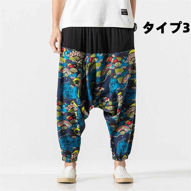 サルエルパンツ 綿麻 薄手 メンズ 3type M-5XL 七分丈 薄手 ゆったり ガウチョパンツ 涼しい おしゃれ カジュアル 25zm546