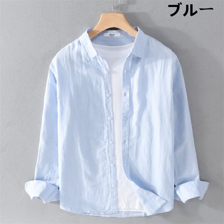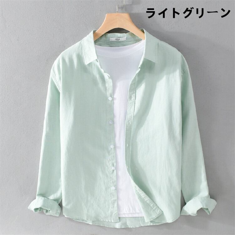 ■商品: シャツ 長袖 長袖シャツ リネン メンズ 7色 S-4XL 綿麻シャツ 無地 春夏 薄手 カジュアルシャツ UVカット 韓国 ファッション コーデ おすすめ カジュアル きれいめ 大きいサイズ 人気 ゆったり 20代 30代 40代 50代