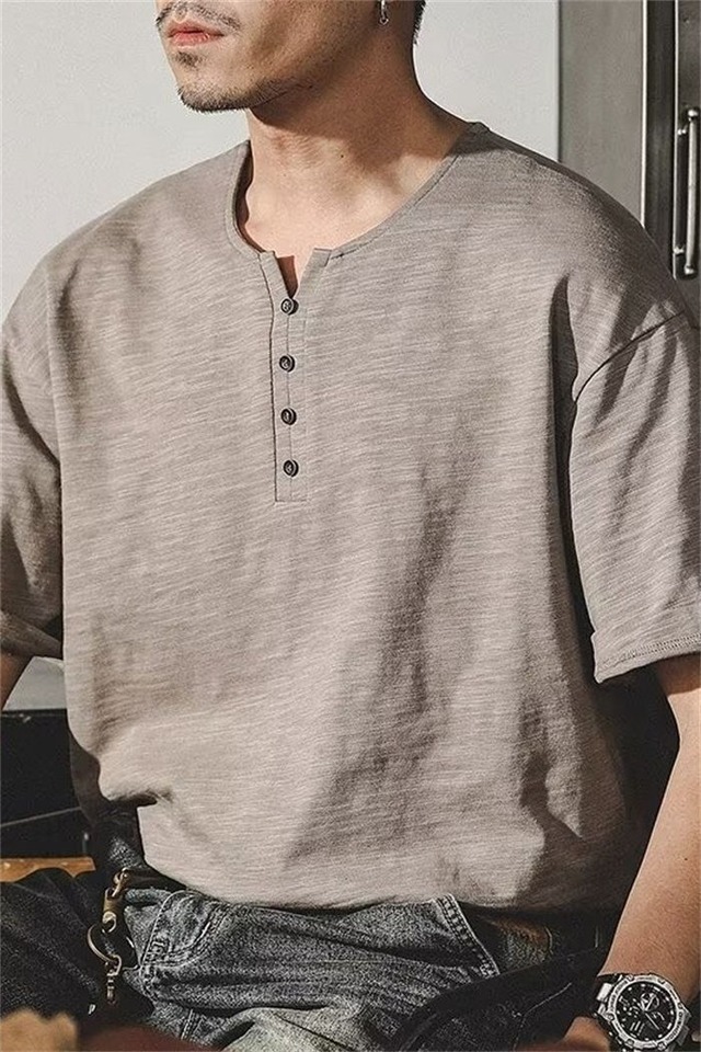 ★特徴:薄手の素材を使用しており、軽やかで通気性も抜群。Vネックデザインとヘンリーネックの絶妙な組み合わせが、おしゃれ感を引き立てます!さまざまなシーンで活躍する、スタイリッシュな一着に仕上がっています。