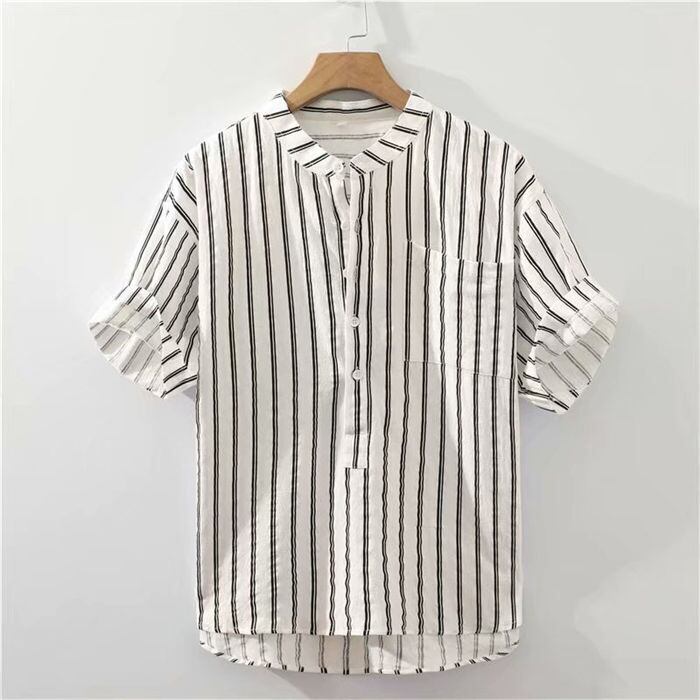 ■商品:半袖シャツ プルオーバーシャツ 綿麻 メンズ 2色 M-3XL リネンシャツ ストライプ 薄手 春夏 カジュアル 韓国 ファッション コーデ おすすめ カジュアル きれいめ 大きいサイズ 人気 ゆったり 20代 30代 40代 50代