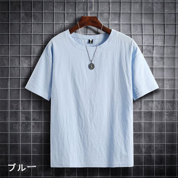 tシャツ 半袖 綿麻 半袖tシャツ メンズ 6色 M-5XL 無地 リネンtシャツ 春夏 カジュアル 薄手 25zm627