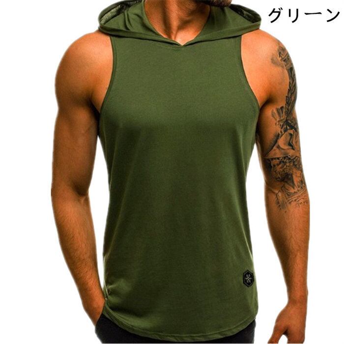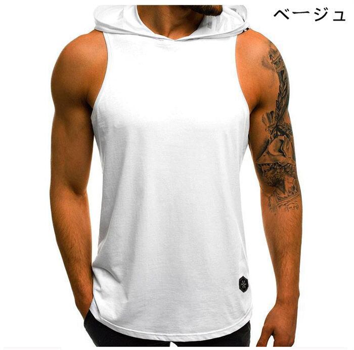 タンクトップ フード付き メンズ 7色 M-3XL 無地 フード付きタンクトップ ジムウェア インナー カジュアル 25zm631