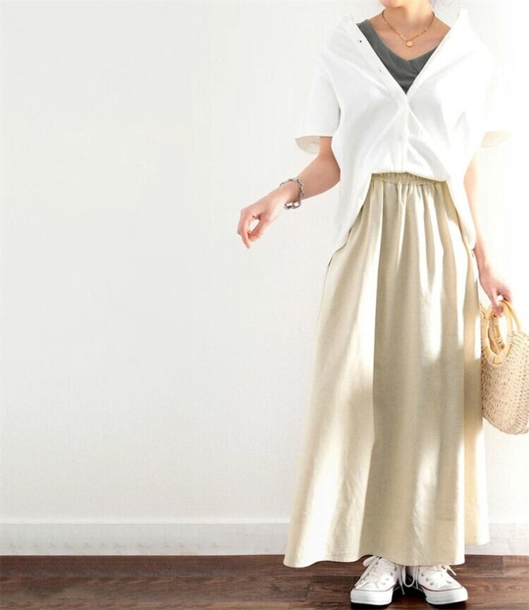 ★特徴:Aラインのシルエットが女性らしさを引き立て、裾が優雅に揺れるデザインは特別な日や普段使いにもぴったり。カジュアルなトップスやブラウスと合わせることで、色々なシーンでのスタイリングが楽しめます。フリーサイズですので、さまざまな体型の方にもフィットしやすく、着回し力の高いアイテムです!