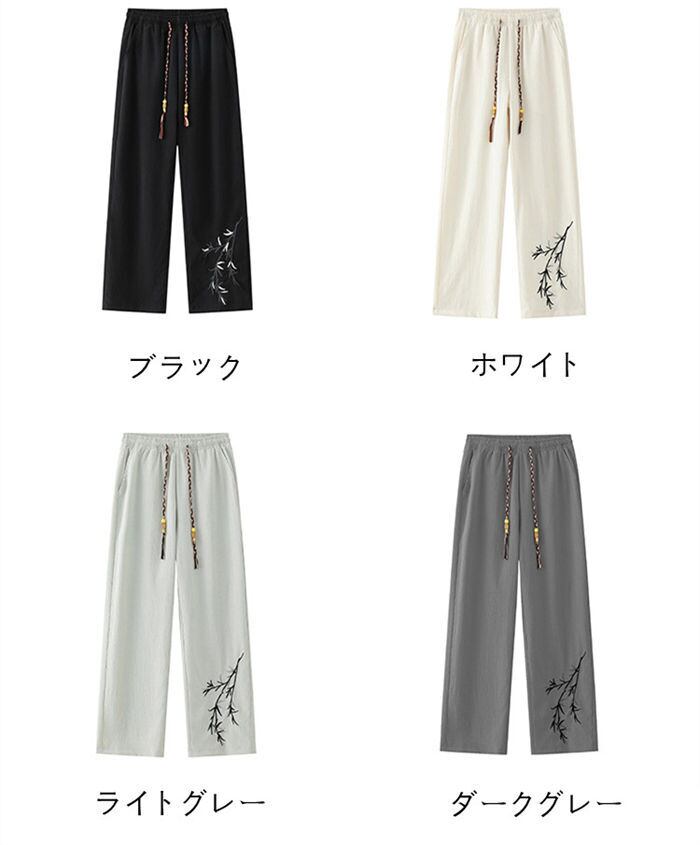 ワイドパンツ イージーパンツ メンズ 4色 S-3XL 冷感 無地 薄手 涼しい 中国風刺繍 ゆったり カジュアル 25zm1163