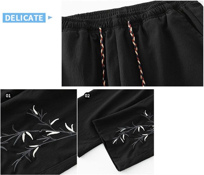★特徴:軽やかで冷感素材を使用したこのイージーパンツは、心地よい涼しさを提供します。無地デザインに中国風刺繍を施し、おしゃれ感もバッチリ!ゆったりとしたシルエットがリラックスした着こなしを実現し、自分だけのスタイルを楽しめます。