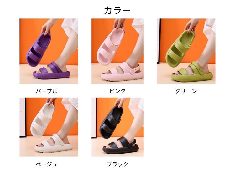 ★特徴:このスリッパサンダルは、軽量で履き心地抜群な設計が特長です。厚底デザインにより、足元を華やかに見せつつ、クッション性に優れた素材で足への負担を軽減します。また、シャワーサンダルやビーチサンダルとしても使用できるため、レジャーに最適なアイテムです。