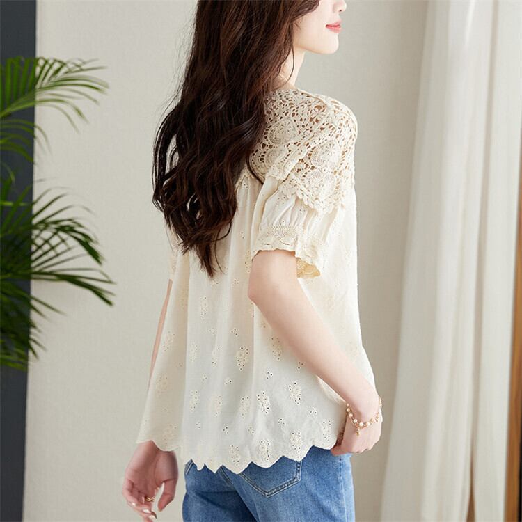 ■商品:ブラウス 半袖/長袖 レース ベージュ レディース M-2XL トップス 無地 大人 オフィス カジュアル 韓国 ファッション コーデ おすすめ カジュアル きれいめ 大きいサイズ 人気 ゆったり 20代 30代 40代 50代