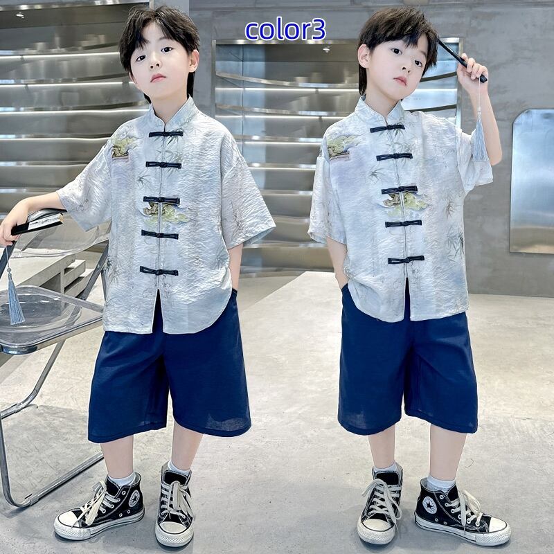 セットアップ 男の子 子供服 4色 120-170㎝ 上下セット 中華風 半袖 上下セット 春夏 カジュアル 25zm1320