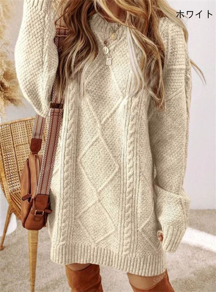 セーター ニット 長袖 厚手 レディース 5色 S-XL ゆったり セーターワンピース カジュアル 秋冬 25zm1388