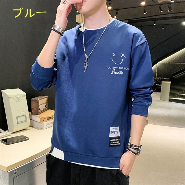 ■商品:スウェット トレーナー プルオーバー メンズ 5色 M-4XL クルーネック 重ね着風 ストリート カジュアル 春秋 韓国 ファッション コーデ おすすめ カジュアル きれいめ 大きいサイズ 人気 ゆったり 20代 30代 40代 50代