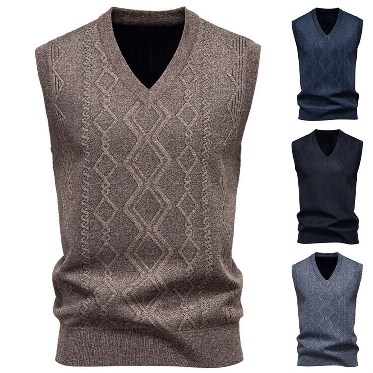 ニットベスト ベスト メンズ 5色 L-2XL Vネック オフィス インナー カジュアル ゴルフ おしゃれ 秋冬 25zm1491