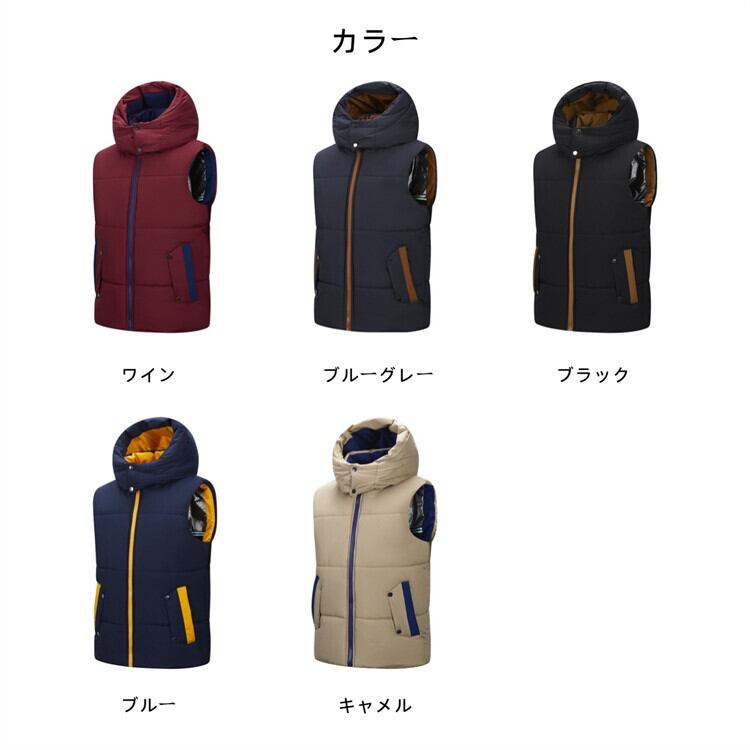 ■商品:中綿ベスト ベスト フード付き 無地 メンズ 5色 L-4XL 防寒 軽量 中綿ブルゾン カジュアル アウトドア 韓国 ファッション コーデ おすすめ カジュアル きれいめ 大きいサイズ 人気 ゆったり 20代 30代 40代 50代