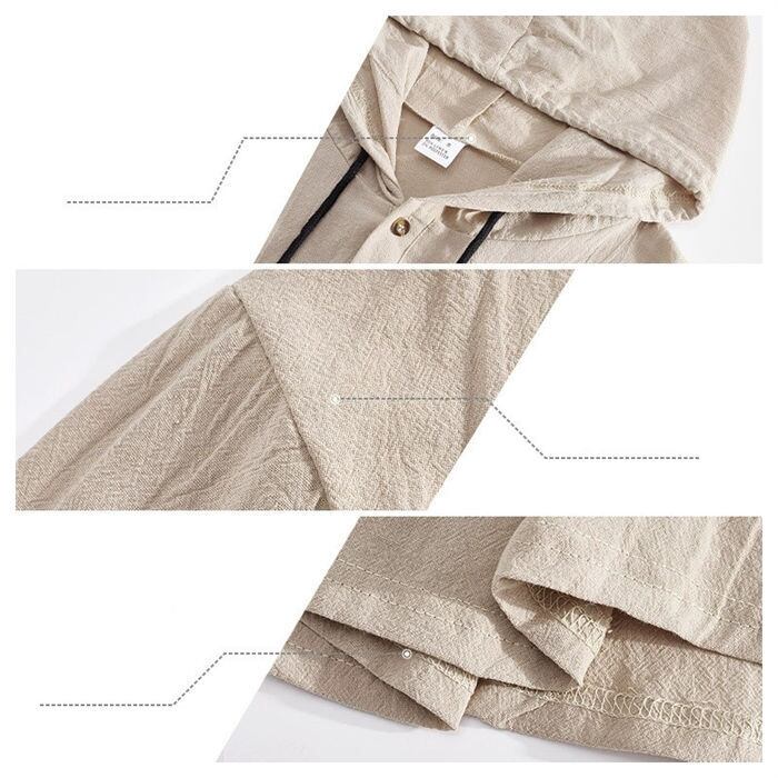 ★特徴:このフード付きシャツは、綿麻素材を使用しており、さらっとした着心地が魅力!無地のシンプルなデザインは、カジュアルな日常使いやアウトドア活動に最適です。また、UVカット機能を備えているため、日差しの強い日でも安心して着用できます。フード付きのスタイルでスタイリッシュ感を加えつつ、春夏秋の季節に使いやすい一枚です。羽織りとしても活躍し、さまざまなシーンで大活躍します!
