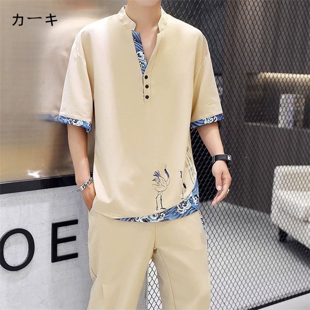 ■商品:セットアップ 半袖 長ズボン 綿麻 メンズ 4色 M-4XL 中華風 上下セット カジュアル 春夏 韓国 ファッション コーデ おすすめ カジュアル きれいめ 大きいサイズ 人気 ゆったり 20代 30代 40代 50代