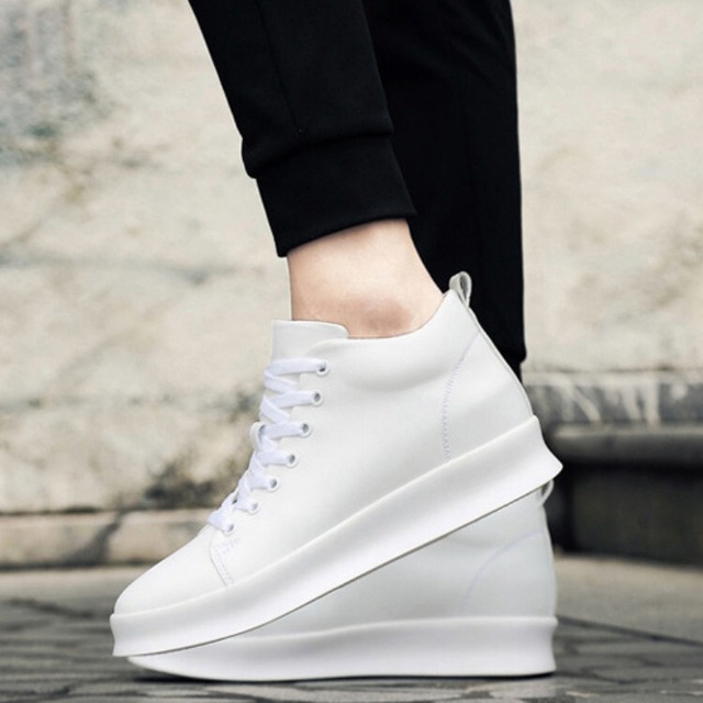 シークレットシューズ 厚底 レザースニーカー メンズ 2色 ソール4.6.8.10㎝ 23.5-27㎝ 歩きやすい 身長アップ カジュアル 25zm1579