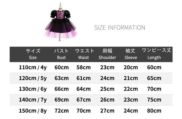 新登場!女の子用のハロウィン仮装ワンピースが、魔女やお姫様になりきれるデザインで登場しました。サイズは110-150㎝まで対応しており、ハロウィンや舞台、特別なイベントに最適な一着です。