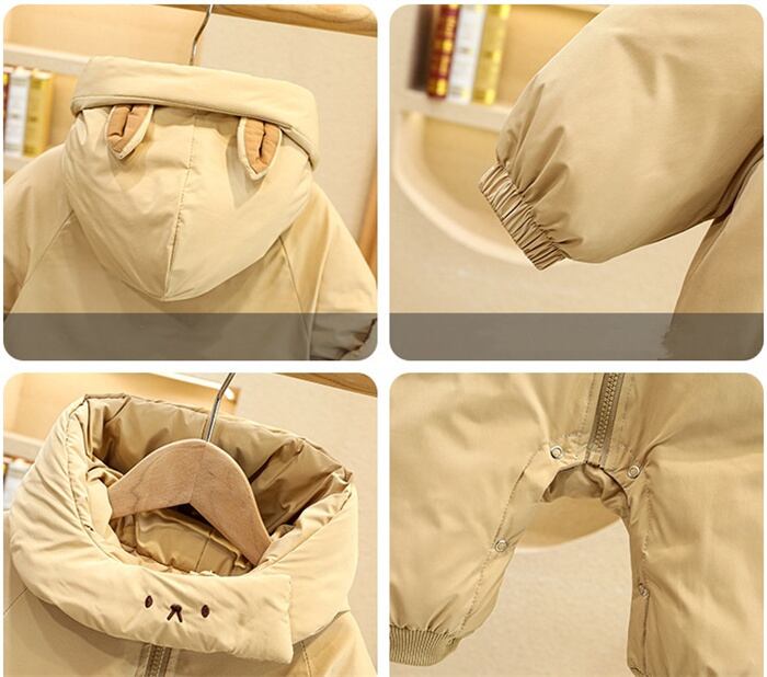 ★特徴:このロンパースは、ふかふかの中綿素材で作られており、寒い日でも安心してお出かけができます。フード付きのおくるみデザインが特徴で、赤ちゃんをしっかりと包み込んで暖かく保ちます。2色展開で、お好きなスタイルを選べるのもうれしいポイントです!動きやすさも考えられており、アクティブなベビーにも最適です。