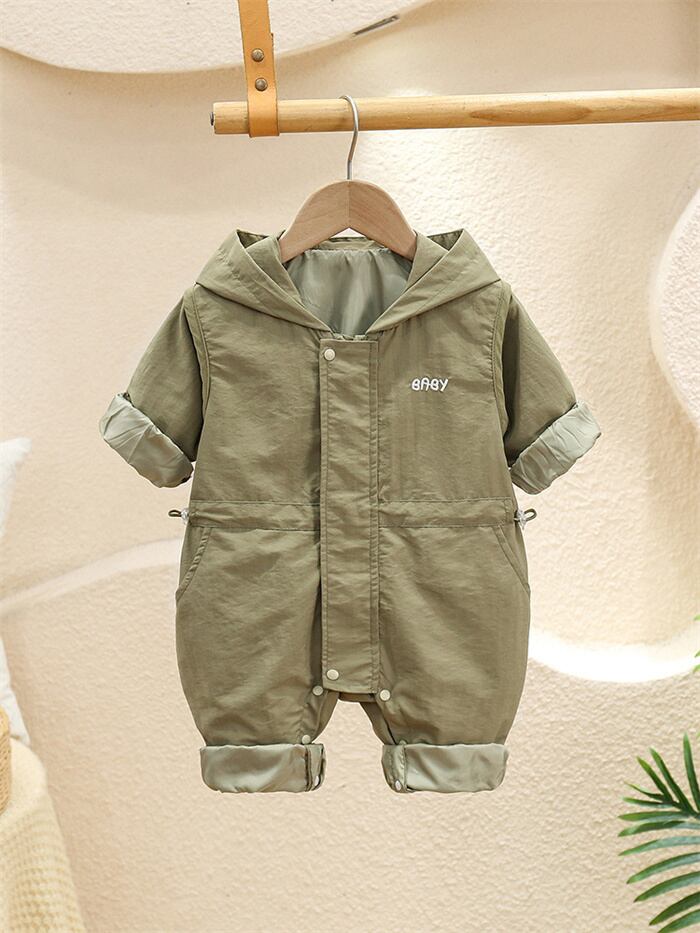 ロンパース 中綿 ロンパース 男の子 ベビー服 2色 66-100㎝ カジュアル フード付き 春秋 おしゃれ かわいい 25zm1612