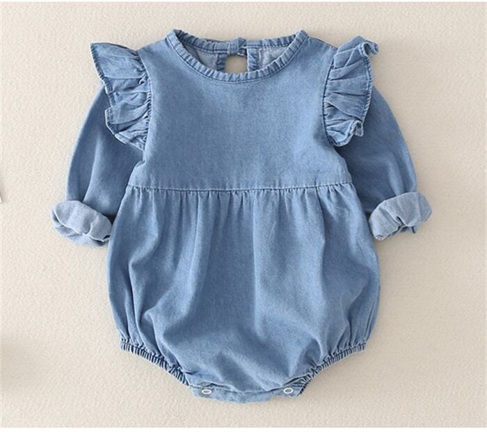★特徴:このロンパースは、柔らかく着心地の良いデニム素材を使用しており、赤ちゃんを優しく包み込みます。フリルデザインが可愛らしさを引き立て、特別な日のお出かけにもピッタリです。多彩なコーディネートが楽しめるアイテムで、洗練されたスタイルを実現します!動きやすさを重視しているため、元気なベビーにも最適です。