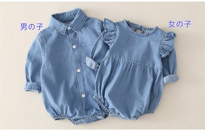 ロンパース デニム 男の子 女の子 ベビー服 66-90㎝ 春秋 かわいい フリル 25zm1615