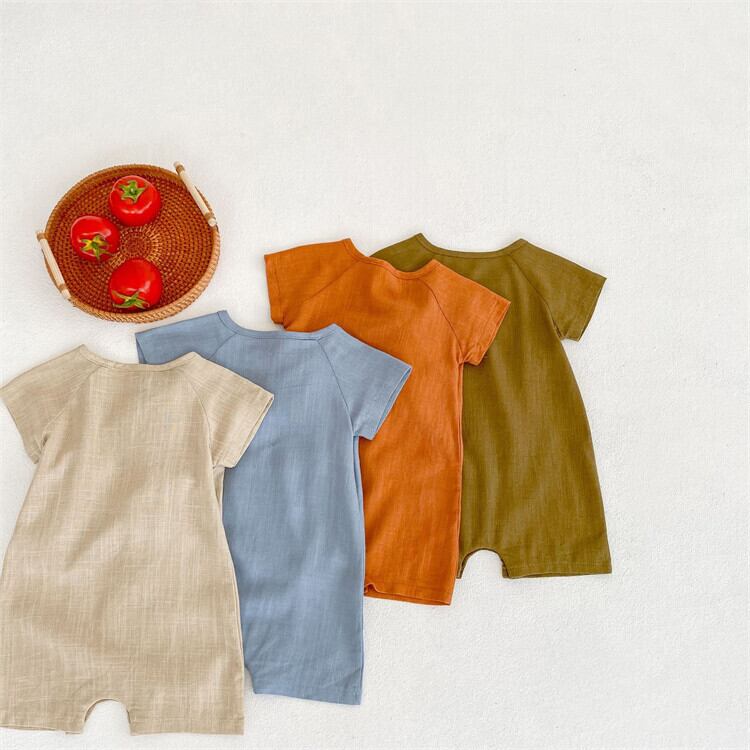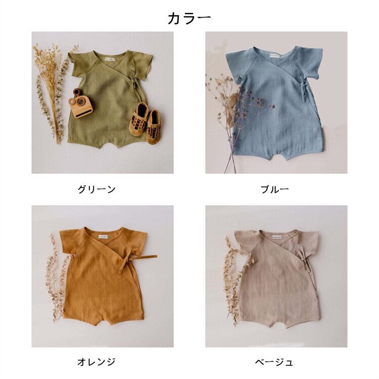 ベビーロンパース サロペット 女の子 男の子 子供服 4色 66-90㎝ 綿麻 コットンリネン 前開き 新生児 あかちゃん 25zm1621