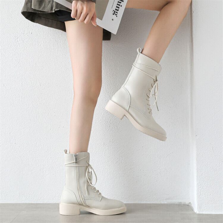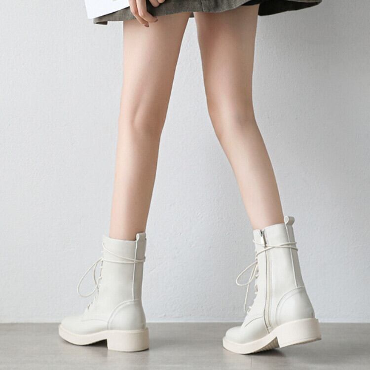 ブーツ レースアップブーツ レディース 2色 22-26.5㎝ PUレザー 厚底 美脚 歩きやすい 痛くない 25zm1622