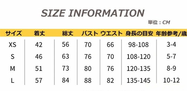 ★サイズ:XS(98cm~108cm) S(108cm~120cm) M(120cm~135cm) L(135cm~145cm)