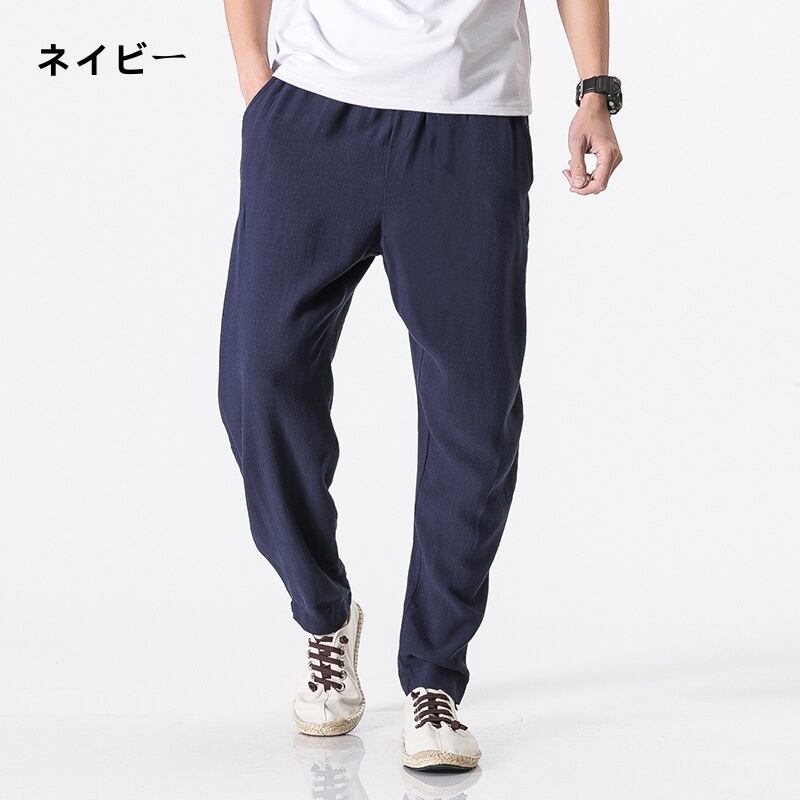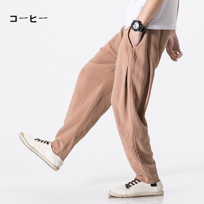 サルエルパンツ 綿麻 イージーパンツ メンズ 5色 M-5XL カジュアル リラックスパンツ 春夏秋 25zm1648