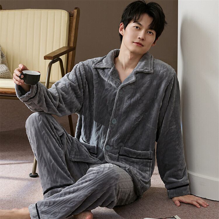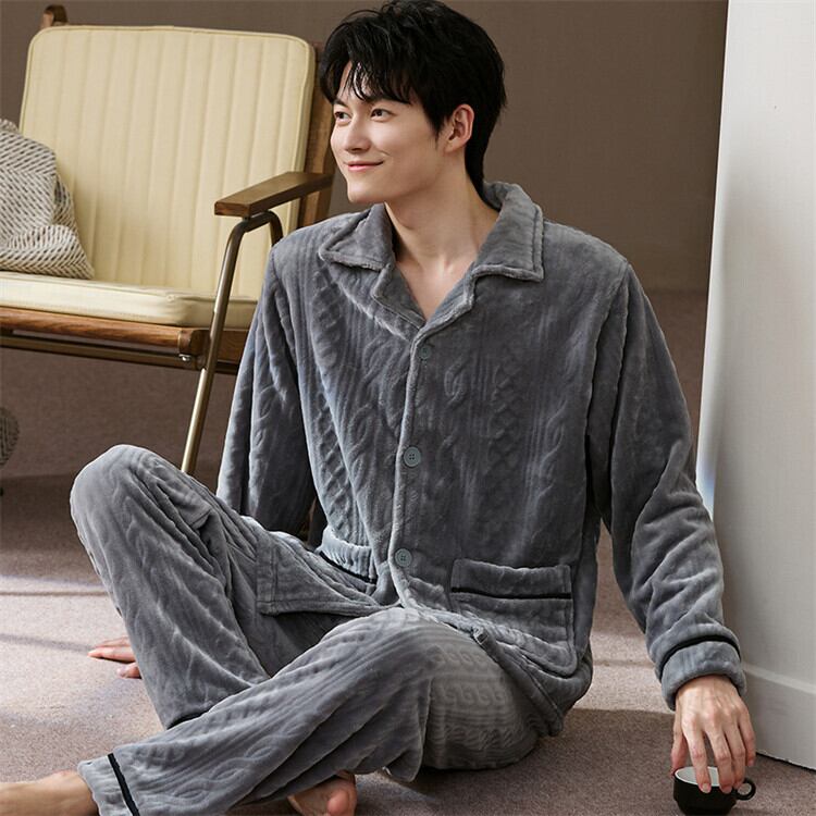 ■商品:パジャマ ルームウェア メンズ 冬用 グレー L-3XL 上下セット 裏起毛 暖かい 防寒 秋冬 部屋着 ナイトウェア 韓国 ファッション コーデ おすすめ カジュアル きれいめ 大きいサイズ 人気 ゆったり 20代 30代 40代 50代