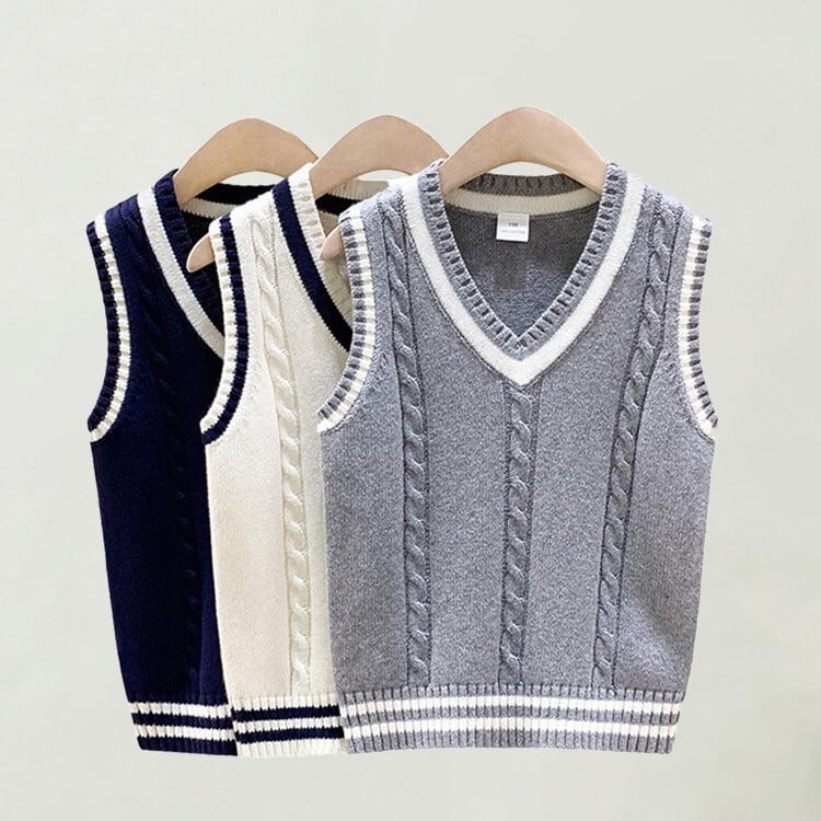 新登場!フォーマルなシーンにぴったりなキッズベストが、110から160㎝までのサイズ展開で登場です。春秋の季節に最適なニット素材を使用したこのアイテムは、着心地も抜群で、おしゃれなVネックデザインが特徴です!