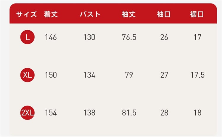 サイズ表の実寸法は商品によって1-3cm程度の誤差がある場合がございます。