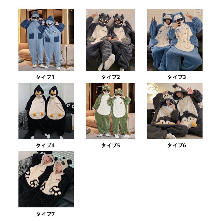 着ぐるみ ルームウェア もこもこ 男女兼用 ペアパジャマ 7type M-3XL 着るパジャマ 防寒 暖かい 冬用 パジャマ 部屋着 25zm1784