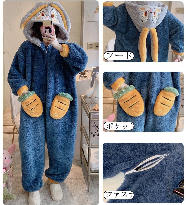 着ぐるみ ルームウェア もこもこ うさぎ レディース M-XL 着るパジャマ かわいい 防寒 暖かい 冬用 パジャマ 部屋着 25zm1786