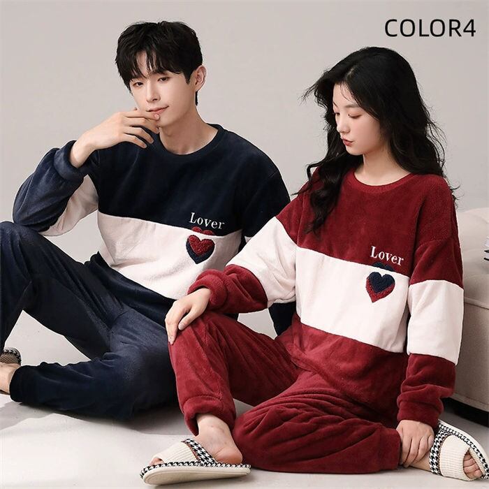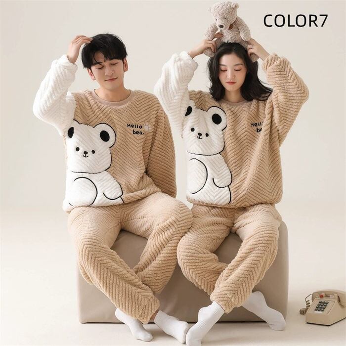 パジャマ ペアパジャマ メンズ レディース 7色 M-3XL ルームウェア もこもこ 部屋着 秋冬 ペアルック 25zm1684