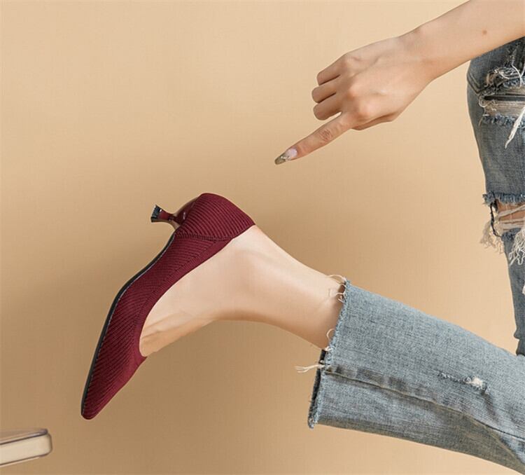 ★特徴:このパンプスは、伸縮性のあるニット素材を使用しており、足にフィットしながらも通気性が良く、長時間の着用でも心地よくお過ごしいただけます。ヒール高は4㎝で、しっかりとした歩行をサポートし、フォーマルな場面からカジュアルな日常まで、幅広いシーンで活躍します。歩きやすさや疲れにくい設計も魅力の一つです!