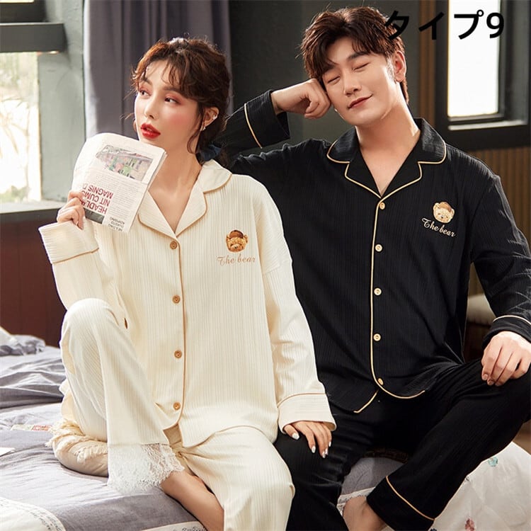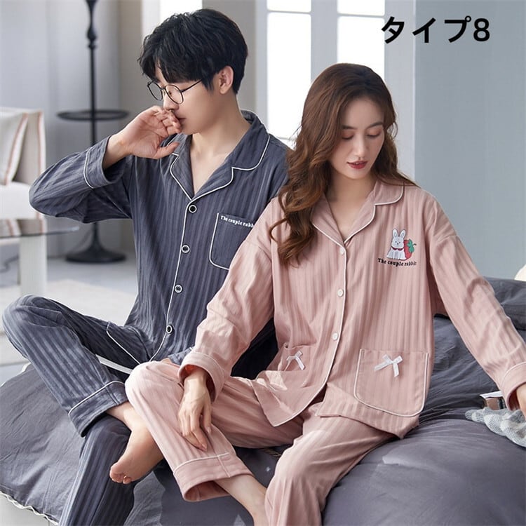 パジャマ ルームウェア 男女兼用 ペアパジャマ 10色 M-3XL 綿 上下セット パジャマ 部屋着 結婚祝い 春秋冬 25zm1711