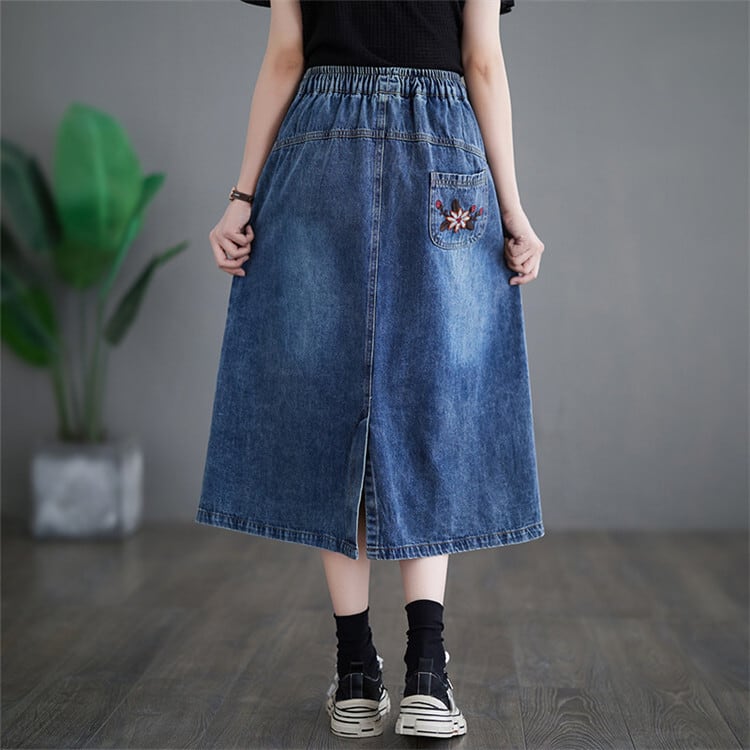 ■商品:デニムスカート 花柄 刺繍 レディース M-2XL ゆったり ウエストゴム ロング丈 カジュアル 韓国 ファッション コーデ おすすめ カジュアル きれいめ 大きいサイズ 人気 ゆったり 20代 30代 40代 50代